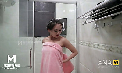 Sweet Asian teenage with tiny boobs gets bare in the laundry room