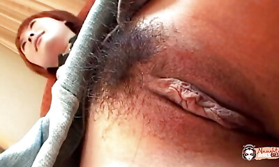 Redhead asian Marina Igawa in maid costume gets her fur covered pussy boinked and cumshot in